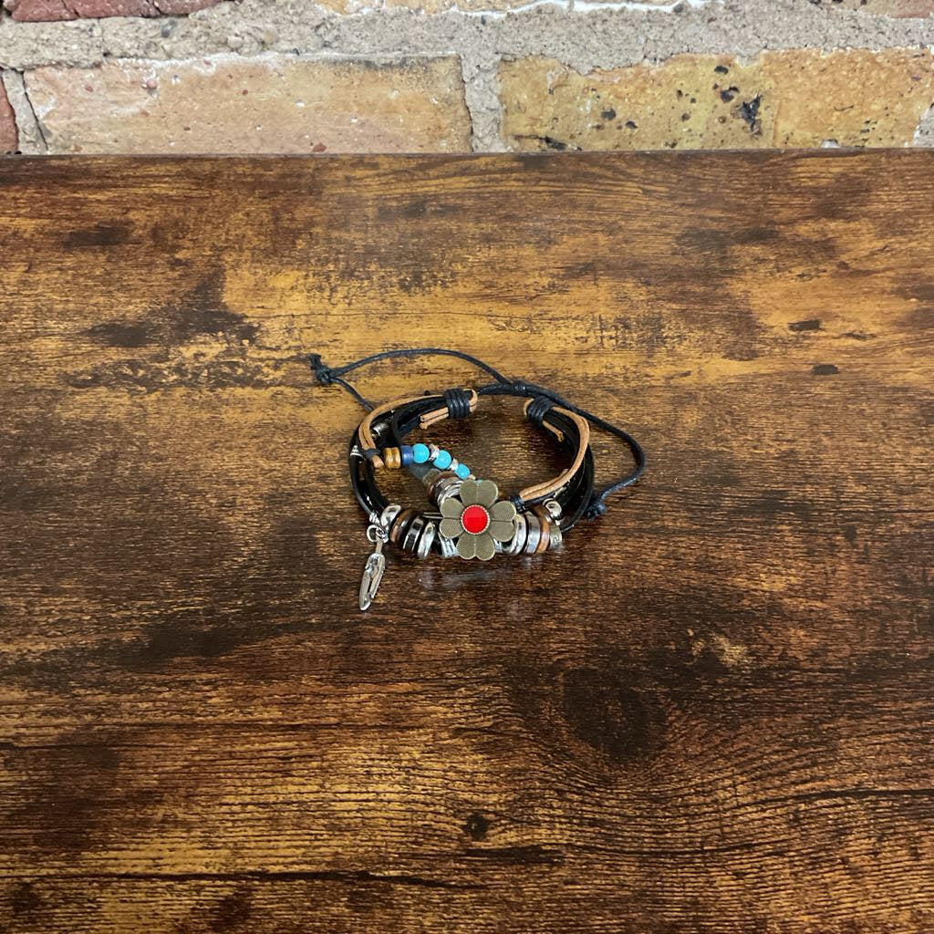 Flower & Feather Layered Bracelet